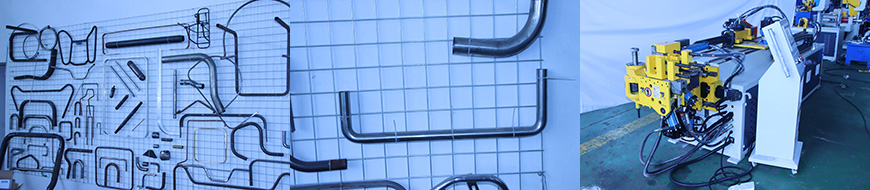 1. 本機(jī)型為經(jīng)濟(jì)型全自動(dòng)三維數(shù)控彎管機(jī),即能自動(dòng)彎曲、自動(dòng)送料、自動(dòng)傾轉(zhuǎn)角度,三維立體管件可一次性自動(dòng)彎制完成,其送料、傾轉(zhuǎn)兩軸是采用伺服電機(jī)和伺服驅(qū)動(dòng)器控制驅(qū)動(dòng)的,彎管軸是由油壓數(shù)值控制,輔推則通過調(diào)流閥調(diào)節(jié)匹配速度。